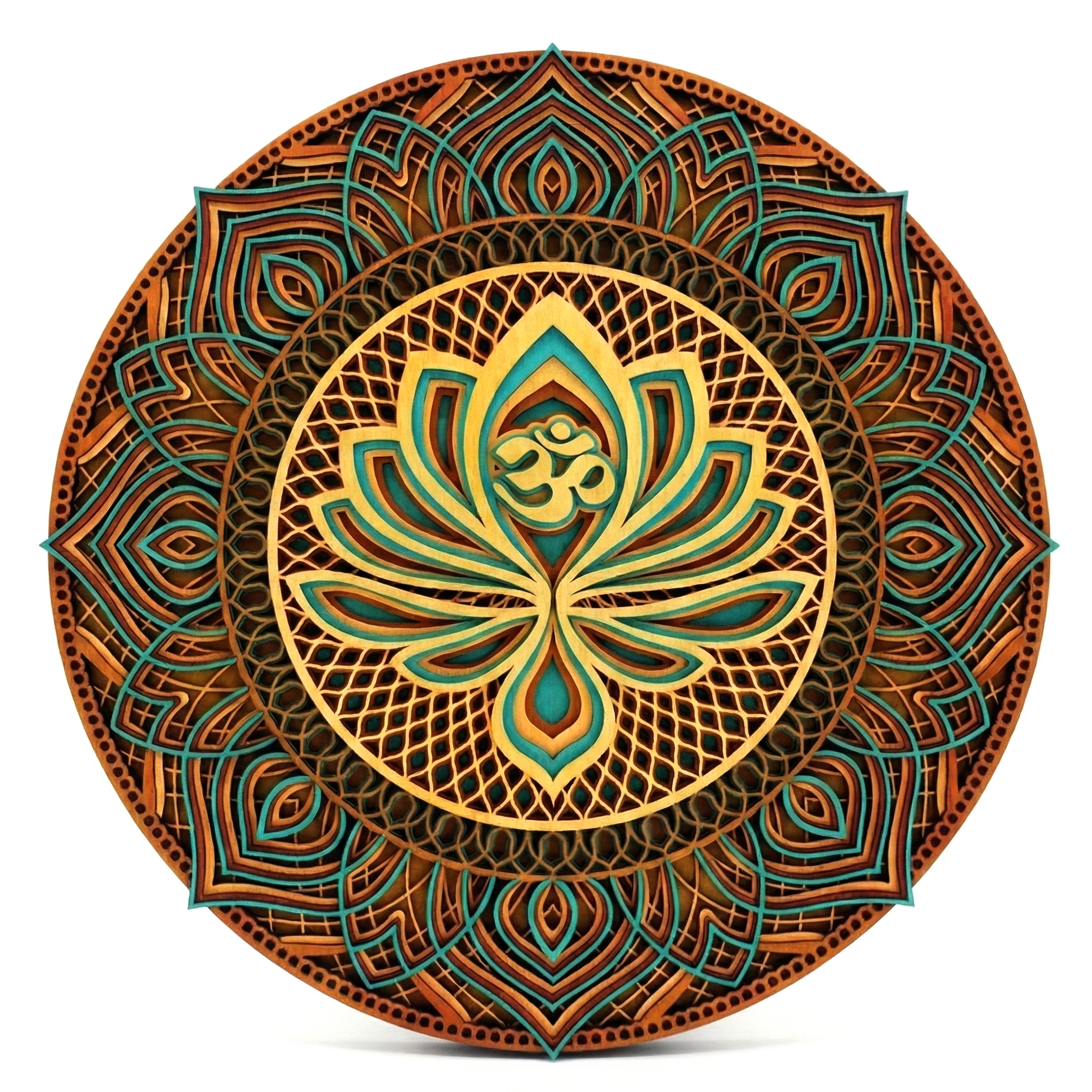 A Mandala Lótus Om - é um símbolo de pureza, iluminação, auto-regeneração e renascimento. O Símbolo Om no centro é conhecido geralmente como o som do universo. Este design único e muito harmônico consiste em 9 camadas separadas. Você pode usar esta mandala 3D no design de interiores doméstico ou como uma decoração para um estúdio de yoga, uma sala de psicoterapia e etc. Além disso, a Mandala pode ser um presente especial para alguém muito especial.